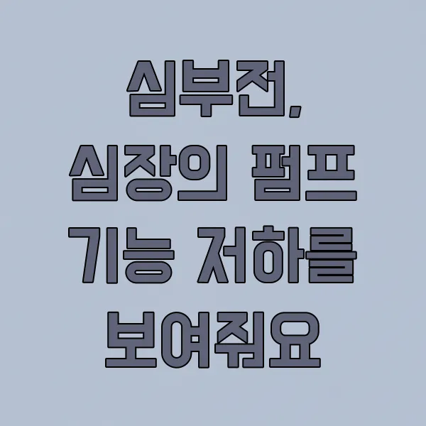 심부전 은 심장이 혈액을 충분히 뿜어내지 못하는 상태를 말해요. 이로 인해 몸이 붓거나 숨이 차고, 쉽게 피로감을 느끼게 되죠. 심장 기능이 전반적으로 저하되었음을 나타내는 신호예요.