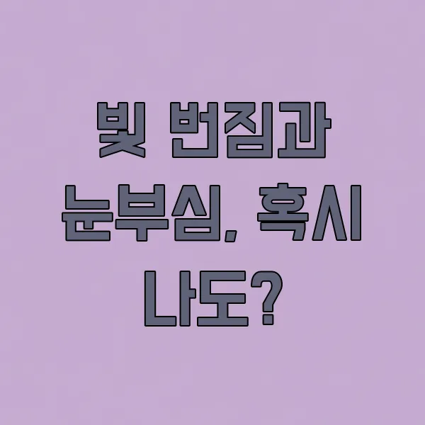 갑자기 밝은 빛 앞에서 눈이 부시고, 밤에 자동차 불빛 같은 것이 여러 개로 퍼져 보이는 '빛 번짐' 현상 이 나타난다면 주의해야 해요.