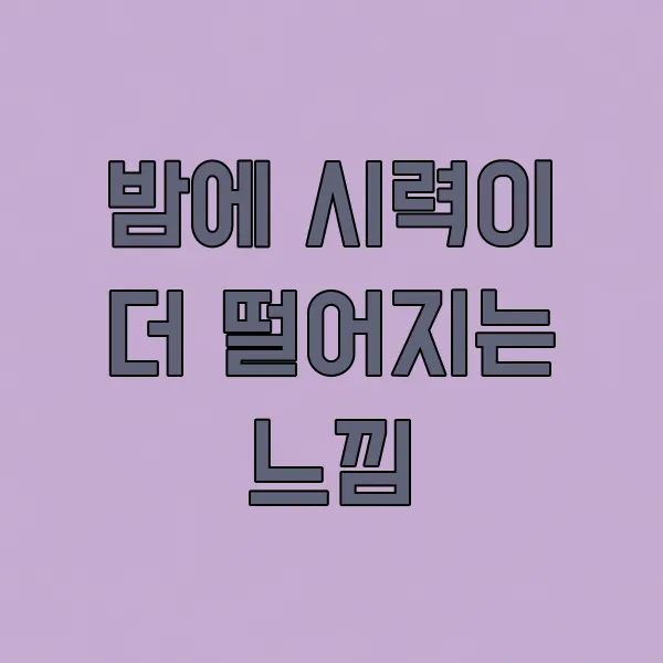 어두운 환경에서는 동공이 커지는데, 이때 뿌옇게 변한 수정체를 통과하는 빛의 양이 많아지면서 시력 저하가 더 두드러지게 나타나는 것이지요.