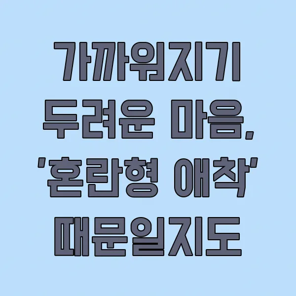 어떤 사람들은 관계가 깊어질수록 오히려 불안해하고 밀어내는 경향이 있어요. 이게 바로 '혼란형 애착'과 관련이 있을 수 있습니다. 어린 시절, 사랑을 줘야 할 대상에게서 오히려 두려움이나 불안을 경험했던 기억이 무의식에 남아있을 때 나타날 수 있는 현상인데요. 그러다 보니 성인이 돼서도 누군가와 아주 가까워지는 것이 무섭고, 관계가 틀어질까 봐 전전긍긍하게 되는 거죠. 이런 분들은 자신의 감정을 스스로 조절하는 데 어려움을 겪기도 해요.