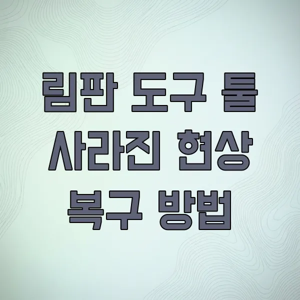 Q5. 림판 도구 툴이 사라진 것과 인터페이스 초기화는 다른 건가요? A5. 네, 도구 모음만 사라진 경우는 Window > Tools 체크로 해결되고, 전체적인 레이아웃이나 특정 툴들이 안 보이는 경우는 Workspace 초기화 로 해결될 수 있습니다.