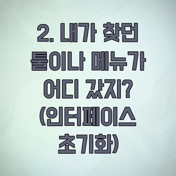 가끔은 도구 모음 자체는 있는데, 내가 자주 쓰는 특정 툴이나 상단 메뉴 몇 가지가 안 보일 때가 있어요. 이럴 땐 인터페이스 설정이 꼬였을 가능성이 높거든요.