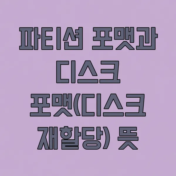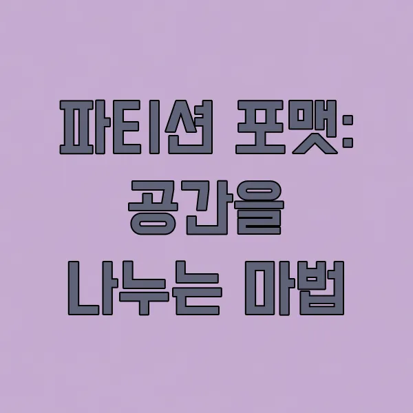 - 파티션 포맷: 디스크 공간을 논리적으로 나누고 파일 시스템을 초기화해요. 데이터는 삭제됩니다.