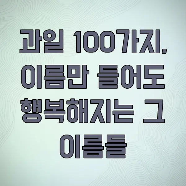 색색깔 예쁜 과일 보면 절로 기분 좋아지거든요. 마트나 시장에 가면 그냥 지나치기 어렵잖아요. 이걸 다 알기나 할까 싶을 정도로 종류가 많은데, 오늘은 그중에서도 우리가 흔히 접하거나 이름쯤은 들어봤을 법한 과일 100가지를 싹 모아봤습니다. 이름만 들어도 침이 꼴깍 넘어가는, 맛있는 이야기 한번 시작해볼까요?